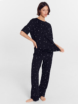 Халат прямой, короткий. Горловина V-образной формы. Рукава втачные длинные. По боковым швам в районе талии настрочены шлевки и вставлен пояс из основного полотна. На уровне талии притачаны завязки из основного полотна для фиксации полы халата. Срезы борта и горловины обработаны обтачками. Нижние срезы халата и рукавов обработаны швом вподгибку.