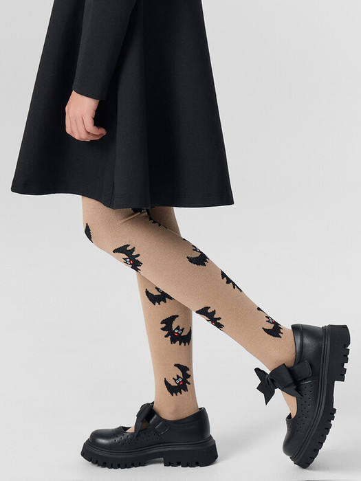 Рис.3390 Гладкие колготки с рисунком в виде летучих мышей и цветных пятки и мыска.