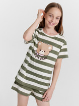 Пижама для девочек, выполненная из нежной хлопковой кулирки, обеспечит вашему ребенку комфорт и уют в течение всей ночи. Свободная футболка с короткими рукавами и круглой горловиной не сковывает движения и создаёт ощущение легкости. Бриджи прямого силуэта длиной чуть ниже колена с эластичным поясом обеспечат удобную посадку и свободу движений. Этот комплект станет прекрасным выбором для комфортного сна и отдыха.