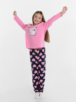 Уютный комплект для девочек состоит из джемпера и брюк. Горловина круглой формы из основного полотна. Рукава длинные втачные. Перед и спинка цельнокроеные. Брюки длинные, немного заужены к низу. Пояс цельнокроенный с эластичной тесьмой внутри. Низ брюк с эластичной тесьмой внутри. Стильная и комфортная детская пижама — отличный вариант для прохладного времени года. Широкий размерный ряд, красивые расцветки моделей в линейке. Рекомендуем!