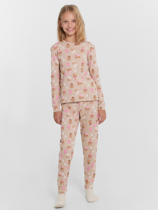 Совместные покупки Тюмень Детская одежда Пижамы, одежда для сна — Mark Formelle КОМПЛЕКТ ДЛЯ ДЕВОЧЕК (ДЖЕМПЕР, БРЮКИ) 567743 567743 домики на беже