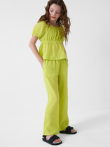 Брюки свободного силуэта. Пояс цельнокроеный внутри с резиной 40RV. Низ брюк в подгибку.
