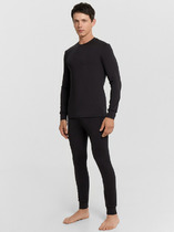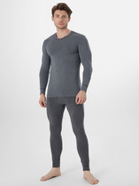 Мужской термо-компдект из полуприлегающего джемпера длиной до линии бедер и облегающих брюк. Рукава джемпера длинные, на манжетах, горловина круглая. Брюки без боковых швов, на манжетах, с эластичной тесьмой в поясе. Все швы плоские и комфортные. В состав полотна, созданного по японской технологии, входит микроакрил, который благодаря своей толщине (меньше волоса человека в 10 раз), создает своеобразные воздушные карманы между нитями – именно за счет этого свойства джемпер так хорошо согревает. Благодаря эффекту натуральной шерсти выдерживает температуры до -30 градусов Цельсия. Зиму контролируете вы!