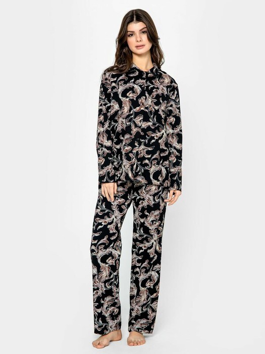 Совместные покупки Тюмень Женская одежда Пижамы, халаты — Mark Formelle КОМПЛЕКТ ЖЕНСКИЙ (БЛУЗКА, БРЮКИ) 592462 592462 узоры на черном 105