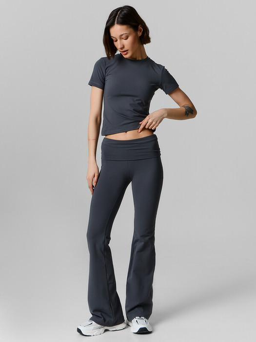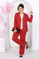 Комплект состоит из джемпера и брюк. Брюки-клеш полуприлегающего силуэта, плотно облегающие бедра и ноги до колен. Пояс с отворотом, отрезной, широкий. Нижние срезы обработаны швом вподгибку.