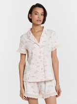 Очаровательный пижамный комплект. Состоит из лонгслива и брюк. Выполнен из хлопкового полотна. Лонгслив длиной до середины ягодиц, прямого силуэта, с круглой горловиной, слегка укороченными рукавами, спущенной линией плеча и фигурным низом. Брюки длинные, свободные. Ваш сон будет комфортным!