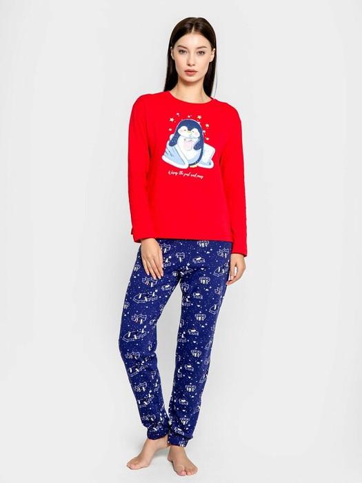 Совместные покупки Тюмень Женская одежда Пижамы, халаты — Mark Formelle КОМПЛЕКТ ЖЕНСКИЙ (ДЖЕМПЕР, БРЮКИ) 592510 592510 красный +пингвины
