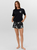 Домашняя пижама из велюра подарит вам ощущение уюта и мягкости. Этот уютный ансамбль состоит из джемпера полуприлегающего силуэта и свободных брюк, созданных для полного расслабления.