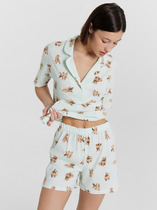 Комплект состоит из джемпера и шорт. Джемпер свободного силуэта. Перед и спинка цельнокроеные. Горловина обработана воротником «поло». Рукава втачные, длиной до локтя, со спущенной линией плеча. Низ изделия и рукава в подгибку. Шорты свободного силуэта, короткие. Перед и спинка цельнокроеные. Пояс цельнокроеный, с втаченной эластичной тесьмой. Низ шорт обработан швом в подгибку..