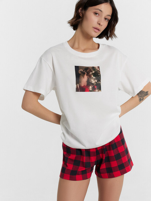 Совместные покупки Тюмень Женская одежда Пижамы, халаты — Mark Formelle КОМПЛЕКТ ЖЕНСКИЙ (ДЖЕМПЕР, ШОРТЫ) 592519 592519 белый +красно -чер