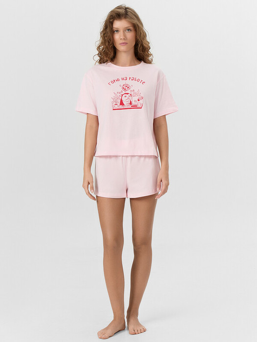 Совместные покупки Тюмень Женская одежда Пижамы, халаты — Mark Formelle КОМПЛЕКТ ЖЕНСКИЙ (ФУТБОЛКА, ШОРТЫ) 592536 592536 морозный розовый