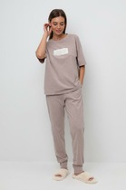 Комплект женский состоит из футболки и шорт. Футболка свободного силуэта. Горловина V-образная с отделкой из кружева, по спинке обтачка из основного полотна. Рукав короткий. Нижний срез футболки и рукавов обработан швом вподгибку.