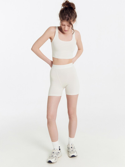 Комплект женский состоит из топа и шорт. Топ прилегающего силуэта. Перед и спинка цельнокроенные. Горловина формы каре. Горловина и проймы обработаны в чистыфй край, нижний срез обработан швом в подгибку. Шорты облегающего силуэта. По переду декоративная отрезная деталь, имитация "гульфика". По верхнему срезу настрочена жаккардовая эластичная тесьма. Нижние срезы обработаны швом вподгибку.