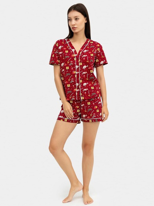 Совместные покупки Тюмень Женская одежда Домашняя одежда — Mark Formelle КОМПЛЕКТ ЖЕНСКИЙ (ЖАКЕТ, ШОРТЫ) 592348 592348 котики на вишневом 1