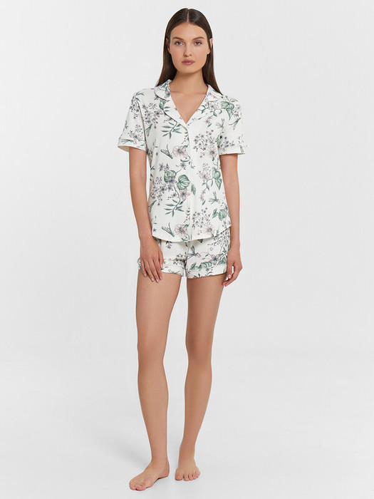Совместные покупки Тюмень Женская одежда Пижамы, халаты — Mark Formelle КОМПЛЕКТ ЖЕНСКИЙ (ЖАКЕТ, ШОРТЫ) 592478 592478 цветы на св.молочном