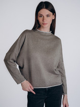 Лонгслив изготовлен из трикотажного полотна кулирка. Лонгсливпрямого силуэта.. Горловина обработана обтачкой с открытым срезом. Шов втачивания обтачки по спинке закрыт бейкой из основного полотна. Рукава втачные длинные. Нижние срезы лонгслива и рукава обработаны швом вподгибку