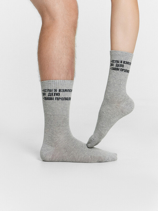 рис.2864 Носок высокий с плотным бортом и рисунком в виде надписи "Если взялся за дело..."