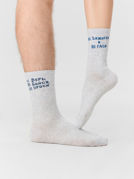рис.3236 Носок высокий с плотным бортом и рисунком в виде надписи "Не верь Не бойся Не проси".