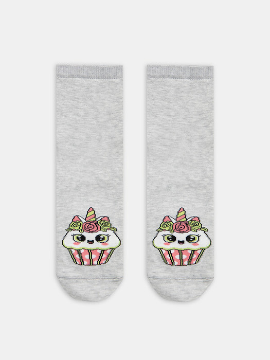 рис.2710 Детский носок гладкий с рисунком в виде пирожных.