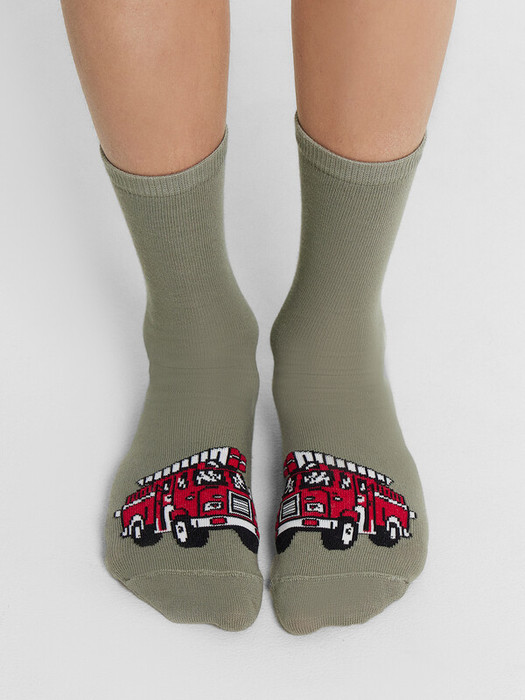 рис.3071  Детские классические носки с рисунком в виде пожарной машины.