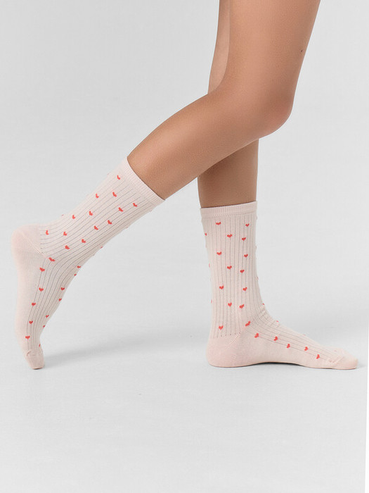 рис.3165 Детские классические носки выполненных перекидным переплетением (лапша) с рисунком в виде мелких сердечек.