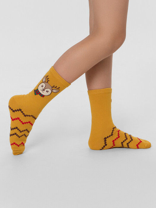 Рис. 3380 Детские классические носки, выполненные из смешанной пряжи с содержанием шерсти и рисунком в виде олененка.