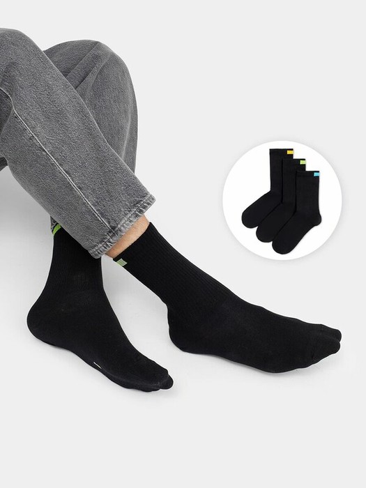 Рис.1916  Мультипак из трех пар мужских носков  классических высокий с плотным бортом и рисунком в виде прямоугольника на бортике.