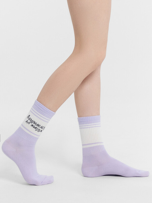 Женский носок с высоким плотным бортом и рисунком в виде надписи "Усеагульная млявасць, абыякавасць да жыцця".