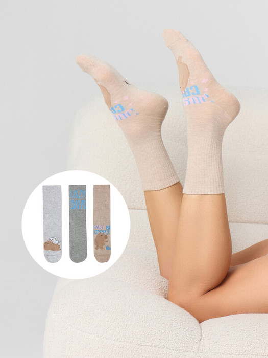 рис.2896 Мультипак из 3-х пар женских носков с высоким плотным бортом и рисунком в виде Капибары и различных надписей. Составляющие: 217A-2897, 217A-2898, 217A-2899