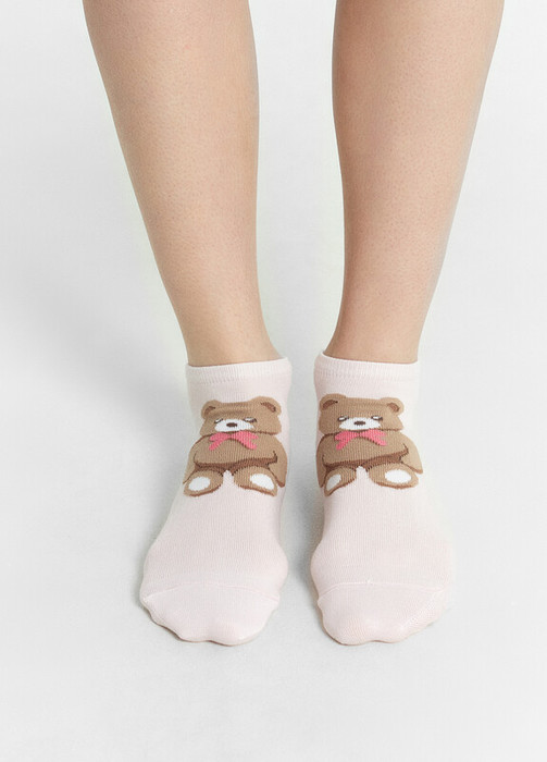 рис.2745 Укороченный женский носок с Y-образной пяткой и рисунком в виде медведя.