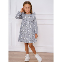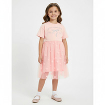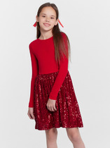 Платье полуприлегающего силуэта с отрезной линией талии. Верх платья из полотна трикотажного рибаны 2*2. Рукава втачные короткие. Круглый вырез горловины. Горловина обработана бейкой  в чистый край. Юбка балон выполнена из ткани с подкладкой из трикотажного кулирного полотна.
