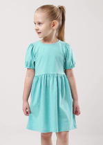 Платье прямого силуэта, с отрезным воланом по талии. Круглый вырез горловины.