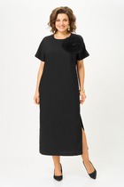 Платье полуприлегающего силуэта из ткани рошель. Горловина V-образной формы. Платье отрезное по талии, с эластичной тесьмой внутри. По эластичной тесьме проложены отделочные строчки. По детали переда средний шов. Детали спинки со средним швом. Рукав втачной, длинный. По окату слегка присборен. Длина рукава  3\4, по низу рукава настрочена эластичная тесьма которая делает сборку. Низ платья расширяется к низу. Длина платья ниже колена.
