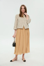 Рукав втачной, по окате с небольшой сборкой. Низ рукава подгибка с эластичной тесьмой внутри, образует сборку. Платье отрезное по талии с эластичной тесьмой, по талии присборено.