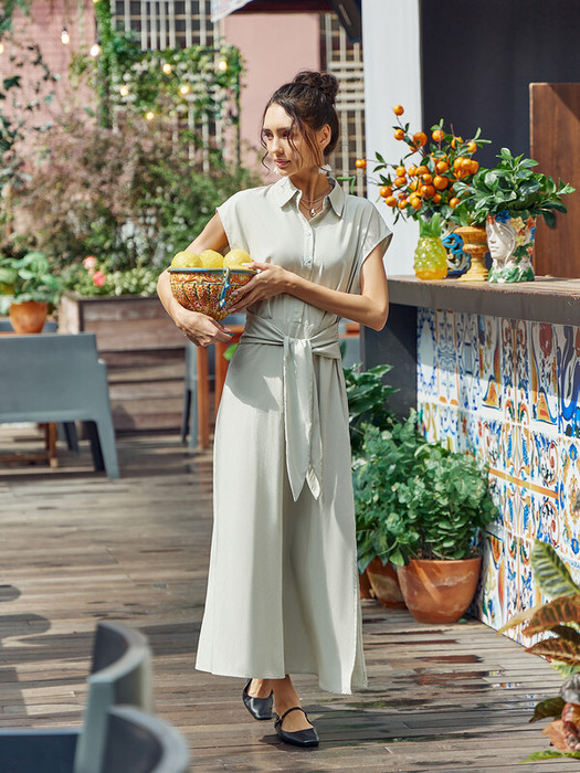 В боковые шве втачан широкий пояс.