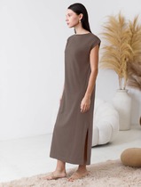 22.03 Vilatte Длинное прямое платье с разрезами из 100% хлопка D42.124 кофе