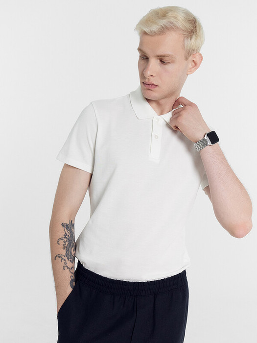 Джемпер мужской «поло» прилегающего силуэта из трикотажного полотна пике. Горловина круглой формы со стояче-отложным воротником из довяза. Центральная застежка планка на пуговицы. Шов горловины спинки обработан хб тесьмой. Рукав втачной, короткий. В боковых швах обработаны разрезы.