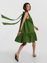 По низу сарафана отрезная широкая рюша. Сарафан длиной миди.