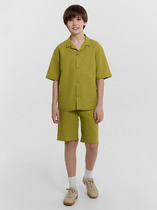 Шорты изготовлены из текстиля. Шорты свободные. Пояс отрезной, внутрь застрочена эластичная тесьма. В боковых швах передних частей шорт наклонные карманы. Низ изделия обработан на 2-х игольной плоскошовной машине швом в подгибку.