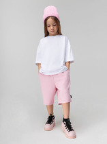 Шорты для девочек свободного силуэта из ткани. Посадка высокая. На детали переда карманы с отрезным бочком. Пояс отрезной с эластичной тесьмой RV40 внутри, на поясе пробиты петли и вставлен шнур из основного полотна. Шов втачивания пояса распошит. Длина выше колена. Низ обработан швом вподгибку с закрытым краем.