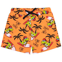 Шорты для мальчиков из ткани (муслин). Шорты с классической линией талии. Силуэт прямой. Пояс цельнокроеный. Верхний срез шорт застрочен с эластичной тесьмой. Карманы в боковых швах (хулиганы). На внешней стороне пояса пробиты петли, втянут шнур из основного полотна. Низ шорт обработан швом в подгибку.