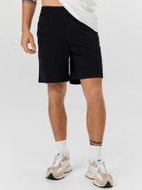 Шорты прямые свободные, посадка средняя. Пояс отрезной с эластичной тесьмой внутри (внутренняя резина. По переду пробиты петли и втянут шнур-бейка из основного полотна с застроченными концами. В боковых швах обработаны карманы. По переду обработан гульфик с супатной застежкой на петли и пуговицы. На задней правой половинке накладной карман. Нижние срезы шорт обработаны швом вподгибку с закрытым срезом.