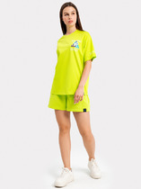 Шорты с посадкой на талии свободного силуэта. Пояс цельнокроеный с резиной внутри 30RV. По центру пояса пробиты петли, протянут шнур кругловязанный 5 мм 5KXWC-1. В боковых швах карманы. Низ изделия застрочен швом в подгибку.