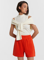Шорты свободного силуэта из легкого трикотажного футера. Широкий эластичный пояс с тесьмой внутри и декоративными строчками. Есть удобные боковые карманы. Рекомендуем!