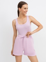 Мини-шорты свободного силуэта из легкого трикотажного футера. Высокая посадка на талии, эластичная тесьма в поясе, регулировочный шнурок-завязка и удобные боковые карманы – комфортный минимализм!