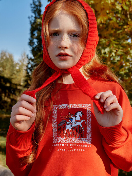 Совместные покупки Тюмень Детская одежда Джемперы, свитеры — Mark Formelle СВИТШОТ ДЛЯ ДЕВОЧЕК 127897/1 127897/1 алый закат +печать 18114
