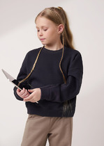 рибаны. По переду отрезные детали вдоль шва притачивания рукава реглан. Горловина круглой