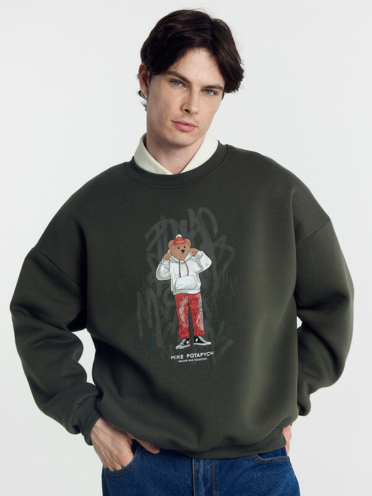 Совместные покупки Тюмень Мужская одежда Джемперы, свитеры — Mark Formelle СВИТШОТ МУЖСКОЙ 121866/1 121866/1 темный хаки +печать 87769