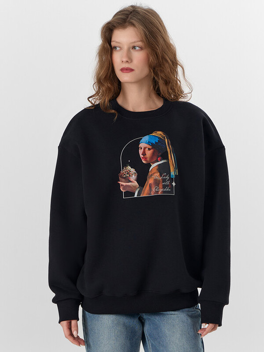 Вдохновленная известной картиной, модель с изысканным принтом и остроумной надписью «Леди с оливьешкой» объединяет классическое искусство и современную моду. Свитшот свободного силуэта с круглой горловиной и длинными рукавами на эластичных манжетах обеспечивает комфорт и тепло в прохладные дни.