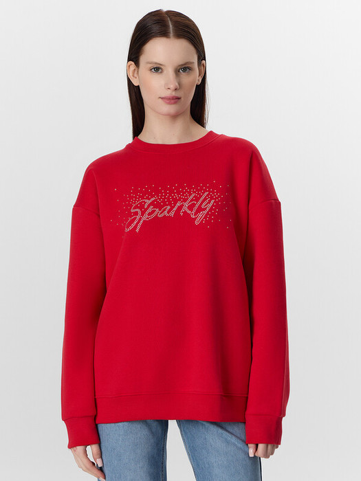 Искрящаяся надпись выполнена из страз, которые создают эффектный блеск при каждом движении.